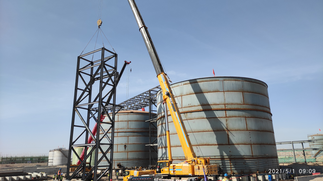化工商贸:物流园货场硫酸罐钢结构吊装顺利完成