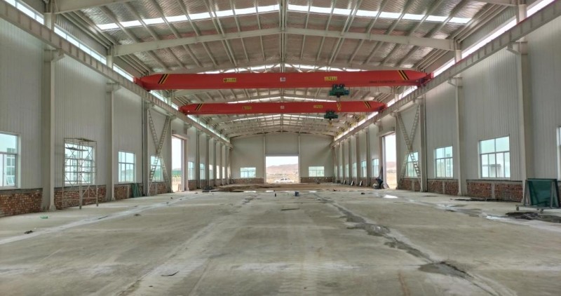 根据公司战略推进及业务发展需要,化学工程公司在集团公司的大力支持下设立钢结构加工生产线。钢结构加工厂房位于兰州新区化工园区检测检验及公共服务平台项目建设基地,厂房总面积3600㎡,其中,加工车间2400㎡,喷漆车间600㎡,喷砂车间600㎡,车间内部配置6台10吨行车,一套钢结构加工流水线设备,计划年产量6500吨。截至目前,该厂房主体结构已完成,部分行车安装到位,剩余行车及设备将陆续进场。