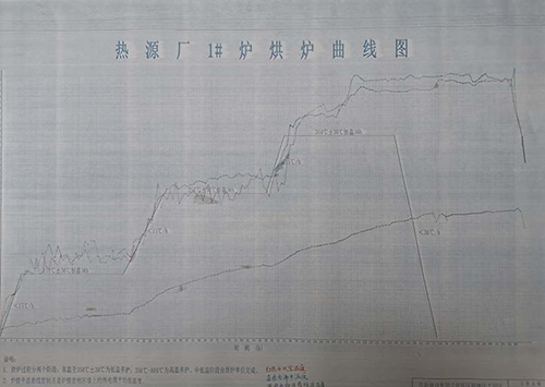 此次烘炉采用带压烘炉的方式,在点火风道等处共布置6台烘炉机,锅炉升温分为三个阶段,分别是:常温~110℃、110~250℃及250~350℃,烘炉完成后按照温度小于30℃/h降温冷却。由于内衬材料密度高、厚度大,水分析出需均匀缓慢,精准的温度控制是烘炉成功的关键,热源厂运行人员24小时轮班作业,严密监控和采集实时数据,对数据进行分析比对和测算,并根据运行现状和发展趋势适时调整油压和风油配比,使温升速率和预设曲线相吻合,游离偏差控制在±30℃以内。