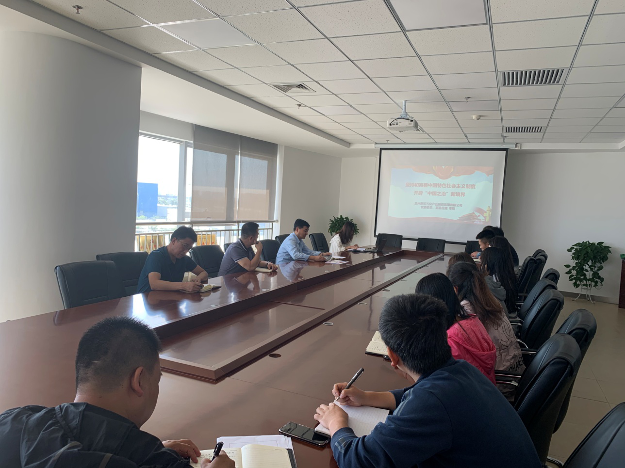 8月26日,石投集团党委商贸公司党支部举行党的十九届四中全会精神专题党课辅导活动,集团公司党委委员、副总经理李刚同志参加活动,并以《坚持和完善中国特色社会主义制度,开辟中国之治新境界》为题为全体党员和入党积极分子讲授了一堂生动的党课。