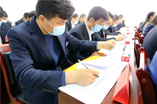 会议通报了2020年生产经营及安全环保情况,集团党委副书记、总经理姜锦同志与各子公司负责人签订2021年《经营业绩目标责任书》及《安全环保目标责任书》。
