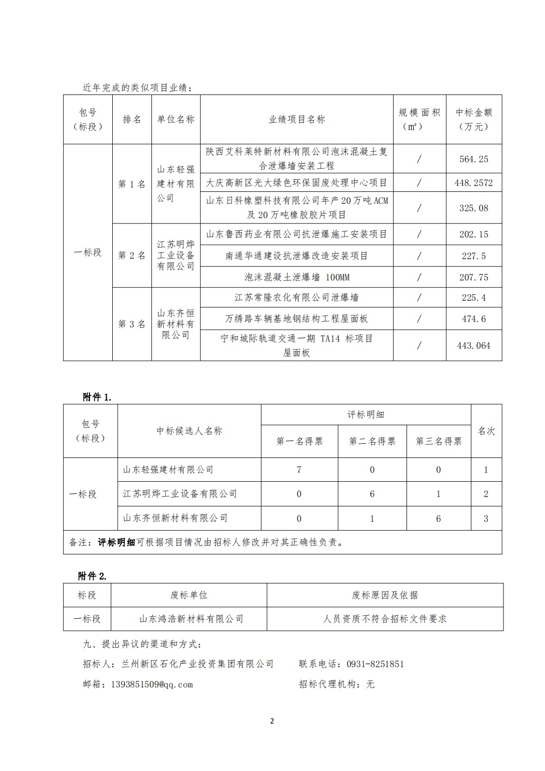 兰州新区专精特新化工产业孵化基地项目(C 区)一期、 三期屋面板墙面板框架采购中标候选人公示